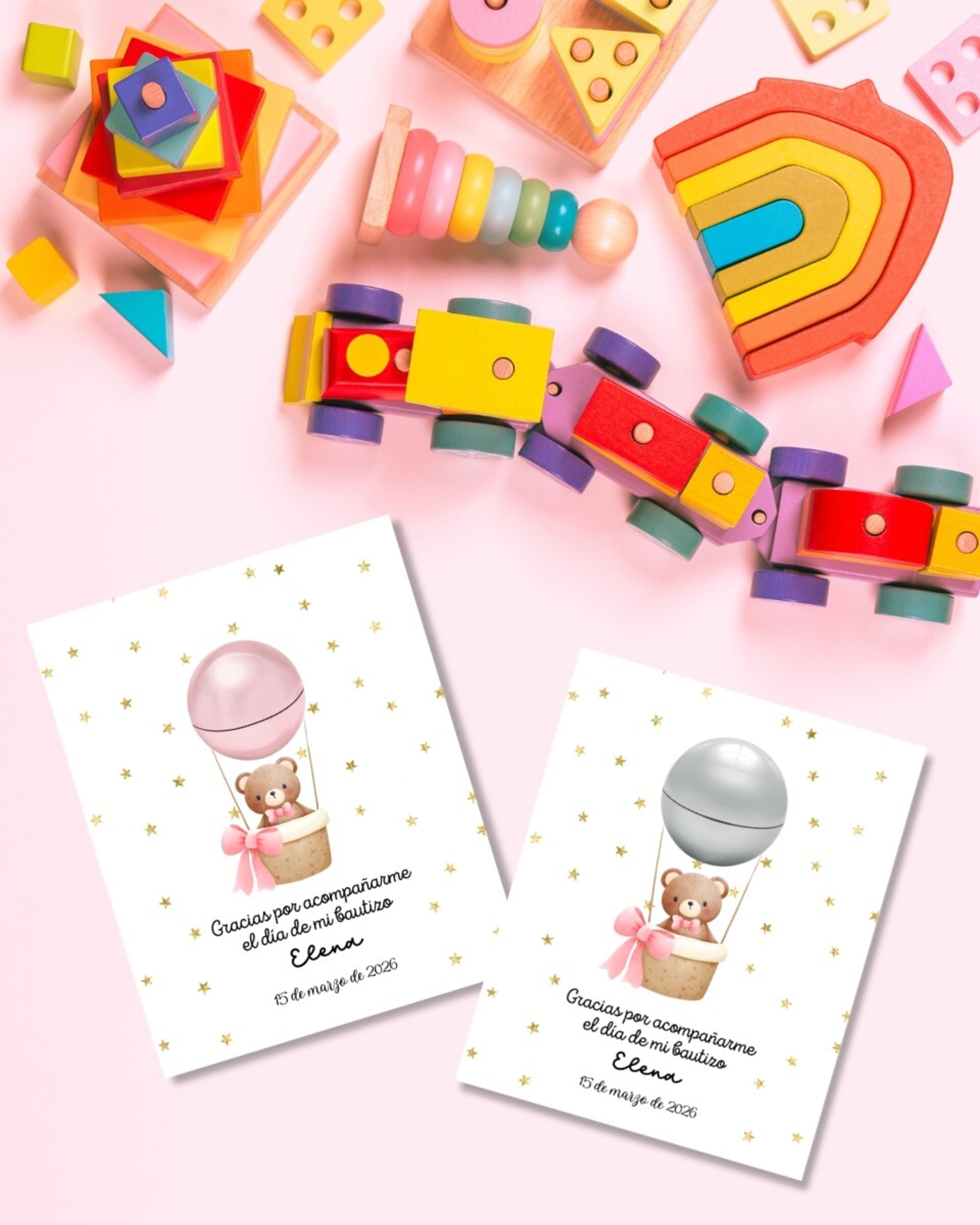 Bálsamo labial redondo con tarjeta "Bautizo"